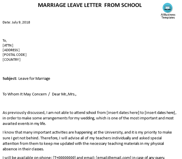 Letter Leave Of Absence Wedding Marriage Leave Application Letter from www.billiekawende.com